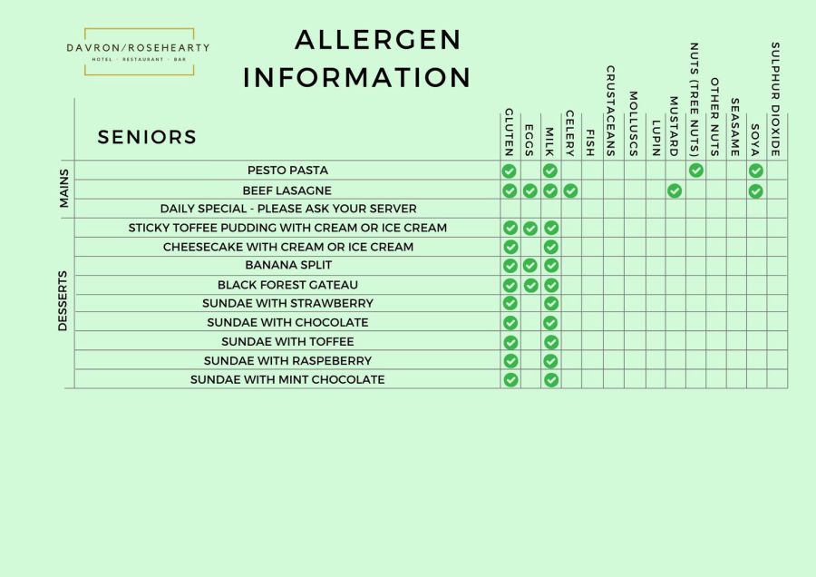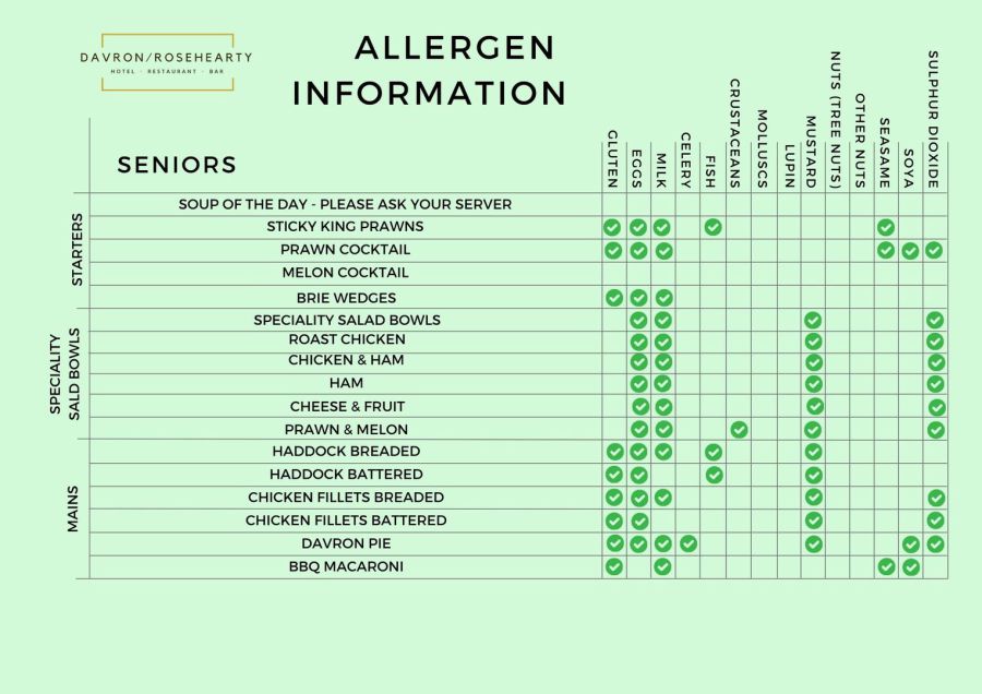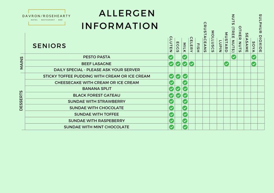 Senior Menu Allergens