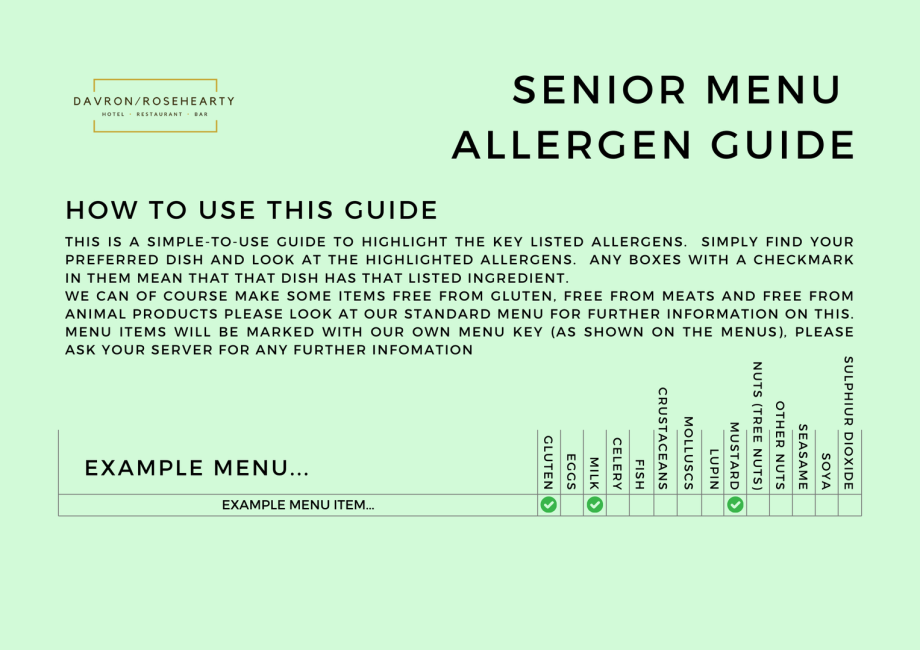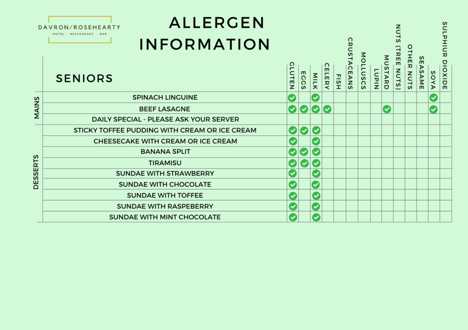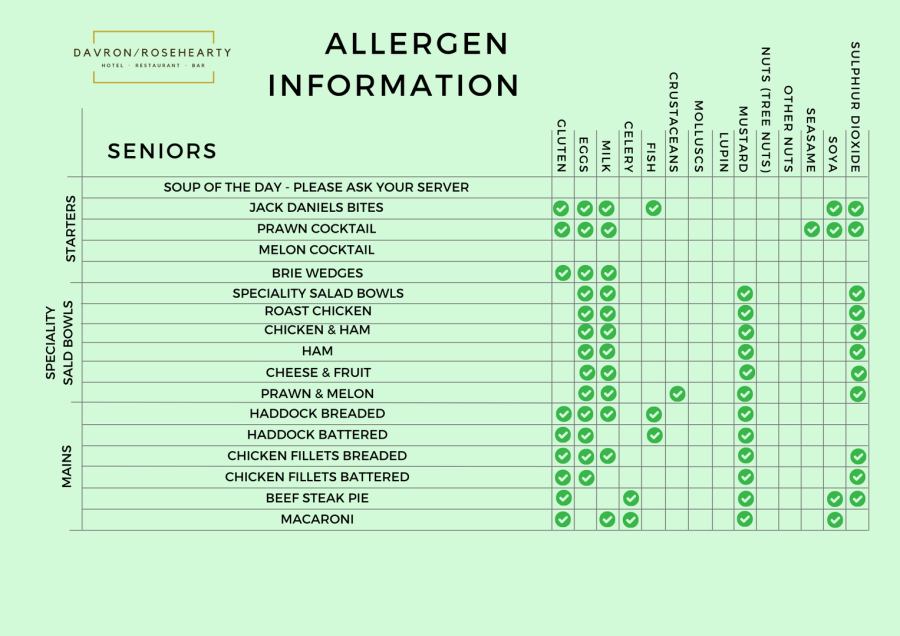 Senior Menu Allergens